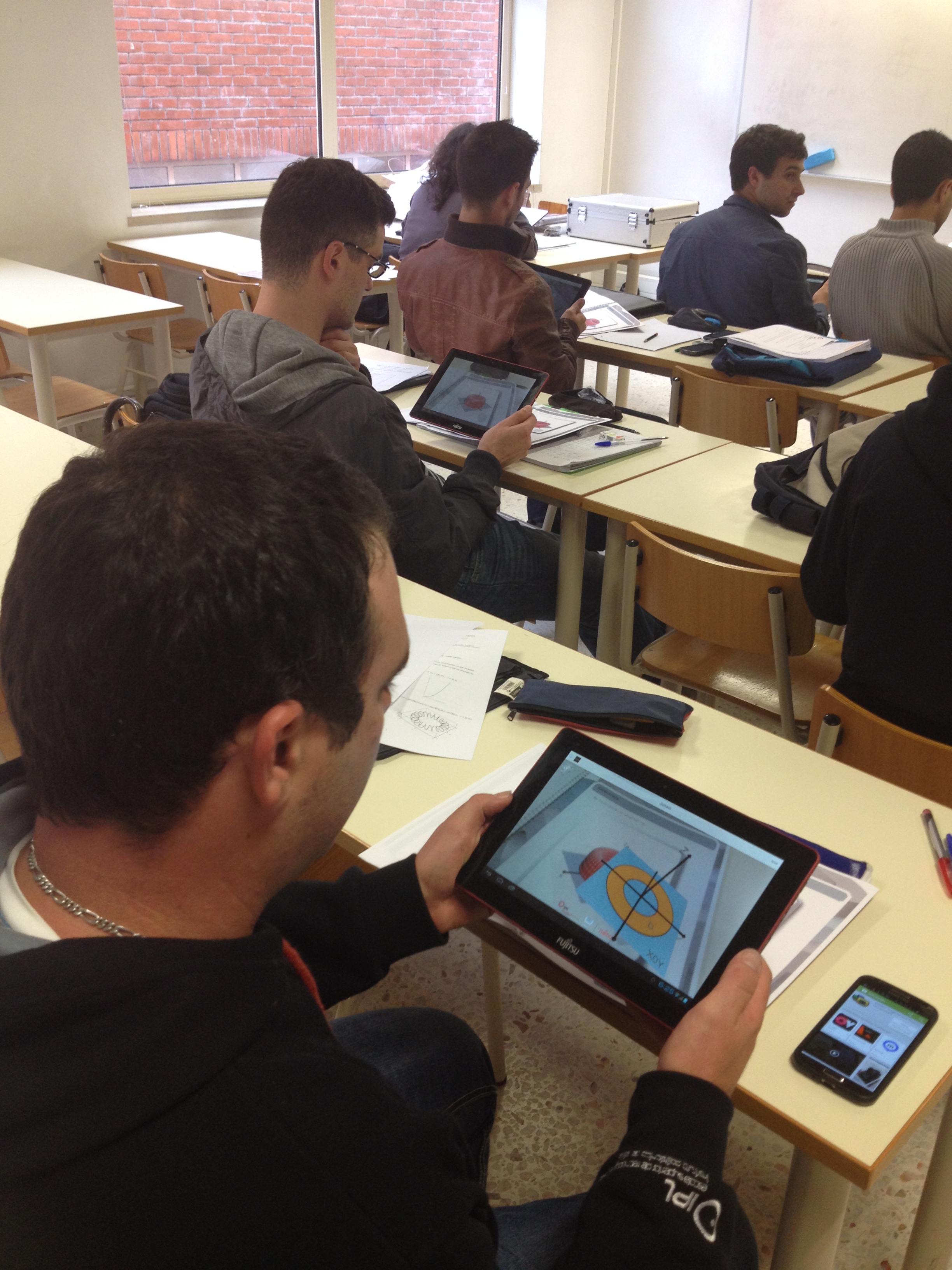 Registo fotográfico de uma implementação de conteúdos 3D, criados em realidade aumentada, numa aula de análise matemática, com estudantes de engenharia do Instituto Politécnico de Leiria. Recurso educacional produzido no âmbito de uma tese de doutoramento em educação, na especialidade de educação a distância e elearning. Projeto de investigação desenvolvido no LE@D, Laboratório de Educação a Distância e Elearning da Universidade Aberta, com o apoio do CDRsp, Center for Rapid and Sustainable Product Development - Centro para o Desenvolvimento Rápido e Sustentado do Produto do Instituto Politécnico de Leiria.