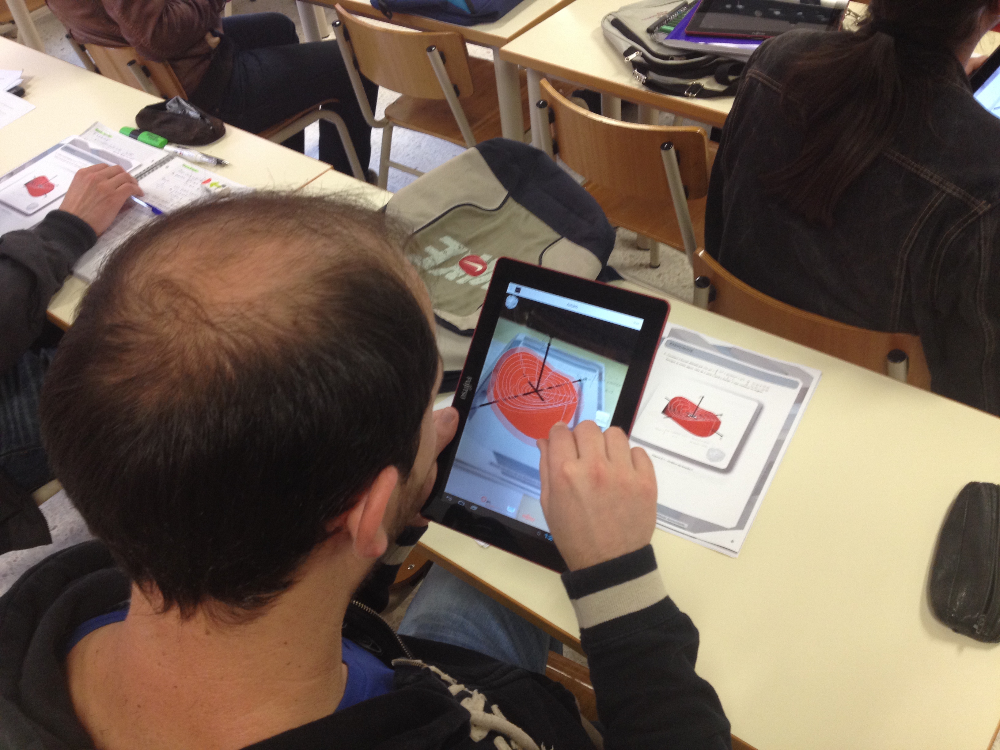 Registo fotográfico de uma implementação de conteúdos 3D, criados em realidade aumentada, numa aula de análise matemática, com estudantes de engenharia do Instituto Politécnico de Leiria. Recurso educacional produzido no âmbito de uma tese de doutoramento em educação, na especialidade de educação a distância e elearning. Projeto de investigação desenvolvido no LE@D, Laboratório de Educação a Distância e Elearning da Universidade Aberta, com o apoio do CDRsp, Center for Rapid and Sustainable Product Development - Centro para o Desenvolvimento Rápido e Sustentado do Produto do Instituto Politécnico de Leiria.