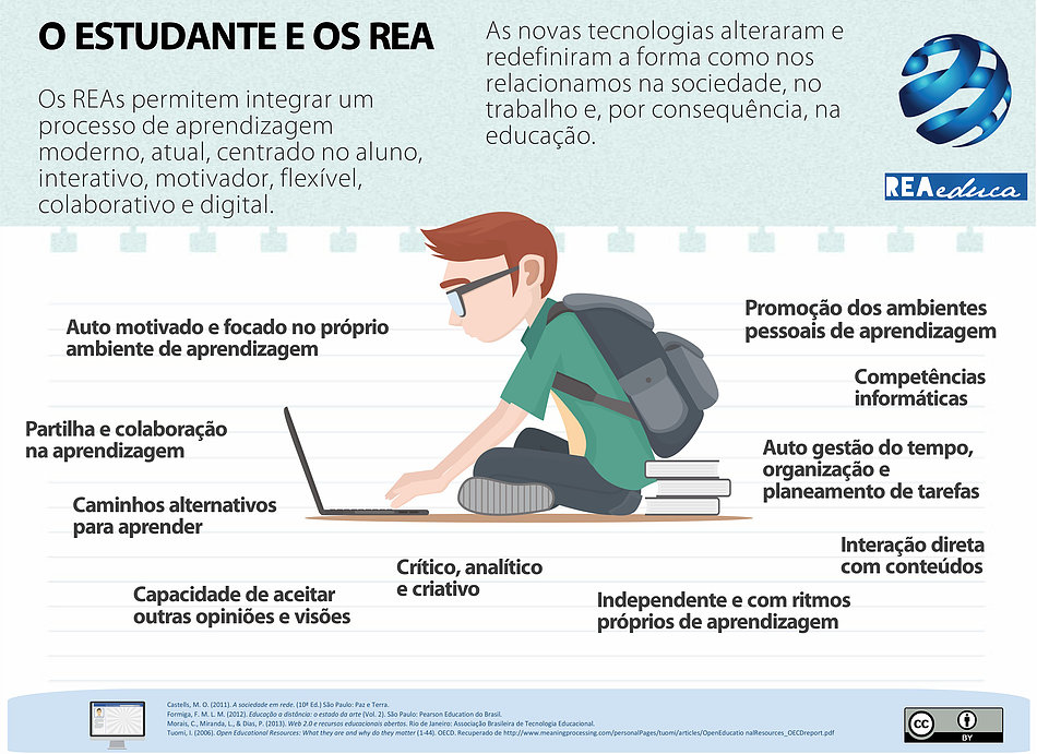 O infográfico desenvolvido evidencia as vantagens que os REAs apresentam para o estudante, nomeadamente para o estudante online