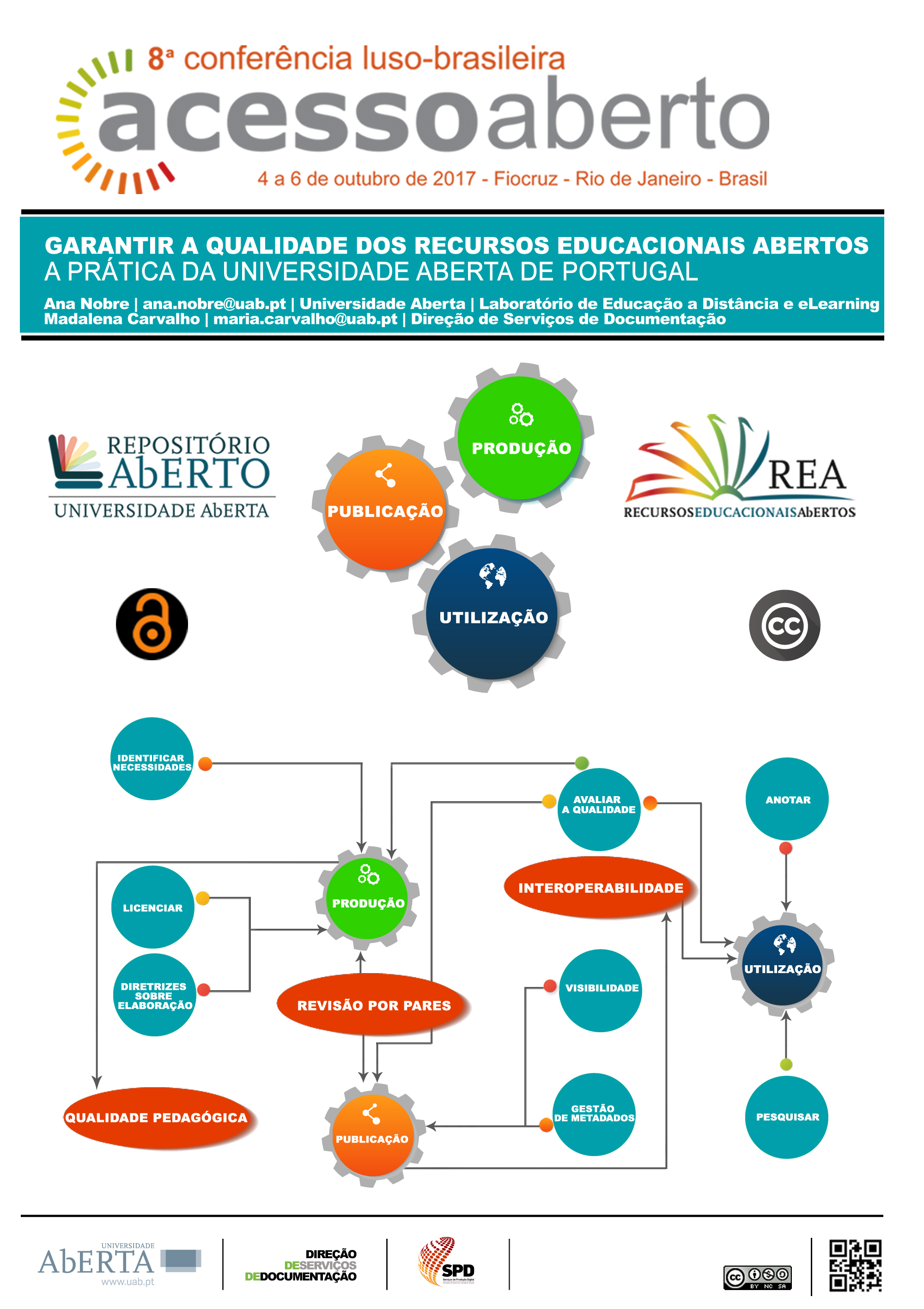 Nobre, Ana; Carvalho, Madalena - Garantir a qualidade dos recursos educacionais abertos: a prática da Universidade Aberta de Portugal. In Conferência Luso-Brasileira de Acesso Aberto, 8, Rio de Janeiro, 2017. "Conferência..." [Em linha]. [S.l.] : [s.n.], 2017. 1 poster